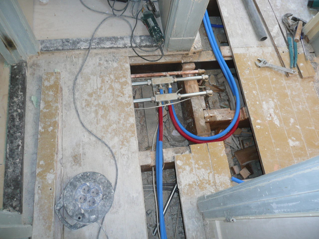 van der meijdestraat , rotterdam blijdorpalle leidingen naar cv's onder de vloer weggewerkt