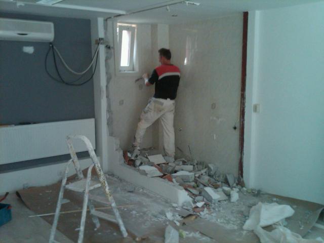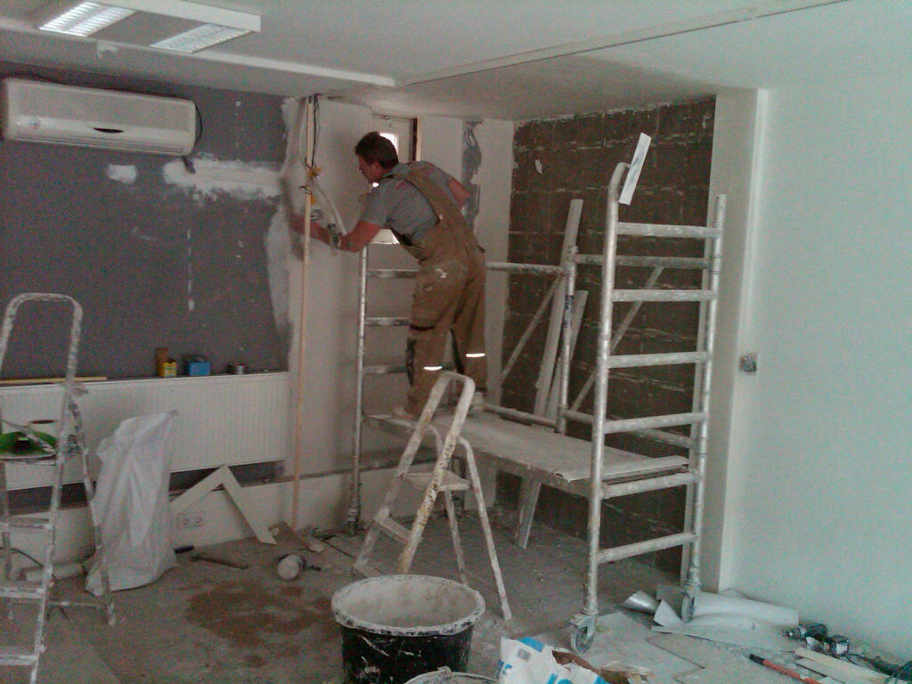 nu de andere wand glad stucen en het plafond aanhelen