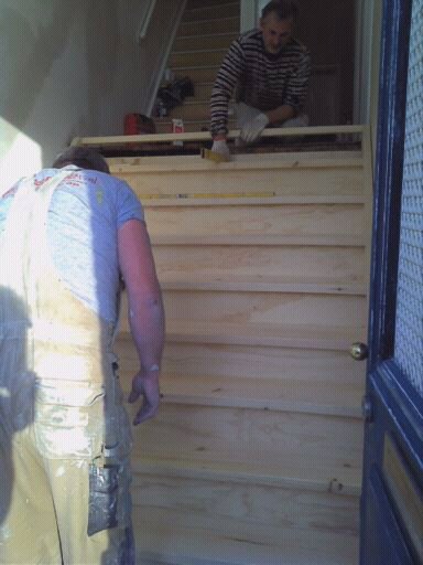 tussenmuur gesloopt , nu die 2 trappen eruit
