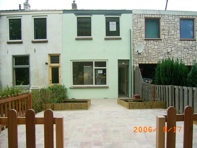 voorgevel klaar en gesaust in zacht groen op verzoek klant