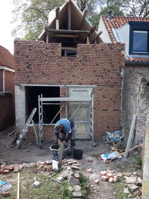 de achtergevel zo goed als klaar