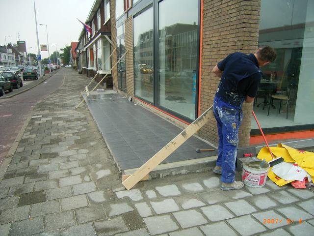 tegelzetters.:corrie kanaalweg ,capelle ad ijssel zuiver op afschot 1,5cm/mtr. tegelen entree Datum: 09-03-08