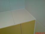 naden dichtgekit met siliconenkit, tegels ingeslepen bij 90 graden overgang.