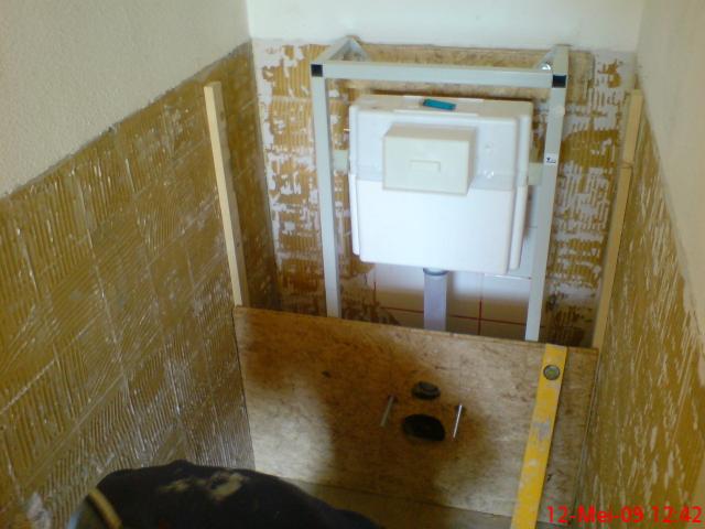 op de multiplexplaat is gipsplaat gemonteerd daarna tegels erop.