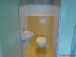 leegslopen van het toilet, oude toiletpot verv. voor zwevend type