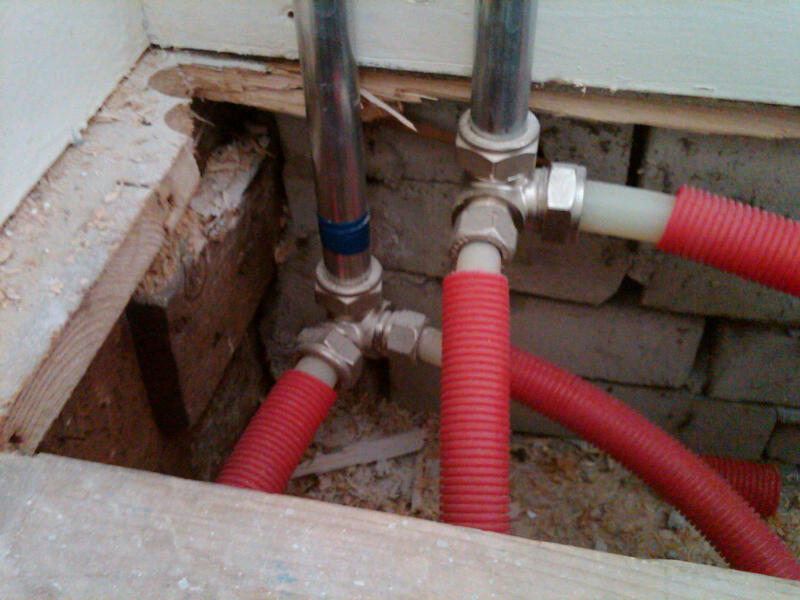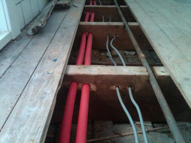 aan en afvoerleidingen cv onder de vloer, gelijk 2 nw. stroomgroepen richting keuken erbij Datum: 18-04-10