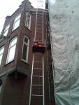 in de steigers met veiligheidsnet en met een lift, start dakrenovatie ! Datum: 22-12-11