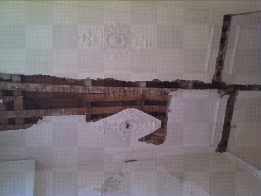 het plafond VOOR herstel na wegslopen van de tussenmuur Datum: 22-12-11