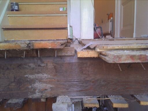 stevige ingemetselde balk waar de trap tegenaan komt Datum: 22-12-11