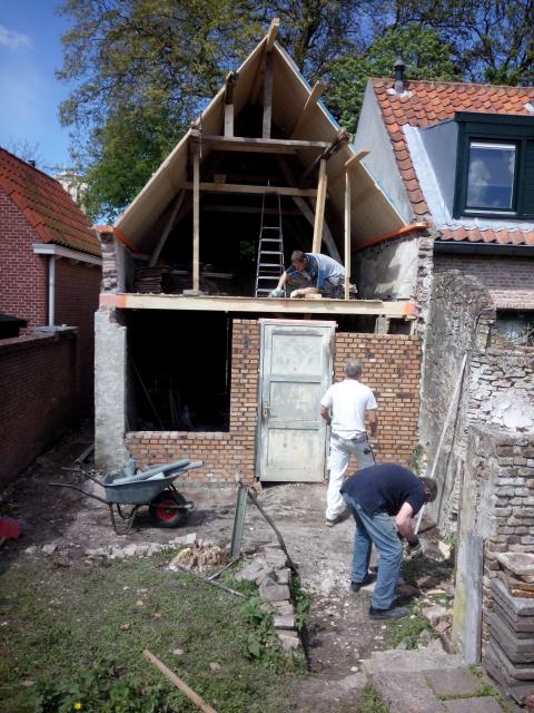 de hele achtergevel eruit ! nieuw dakbeschot