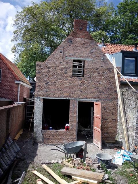 de achtergevel zo goed als klaar