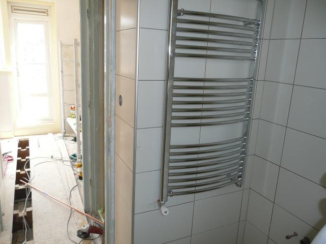 alle cv leidingwerk weggewerkt achter zwevend toilet